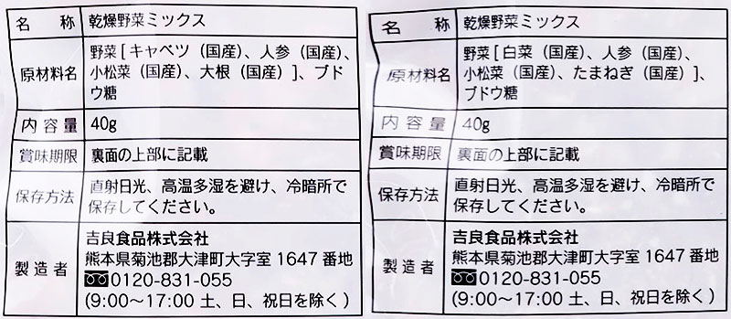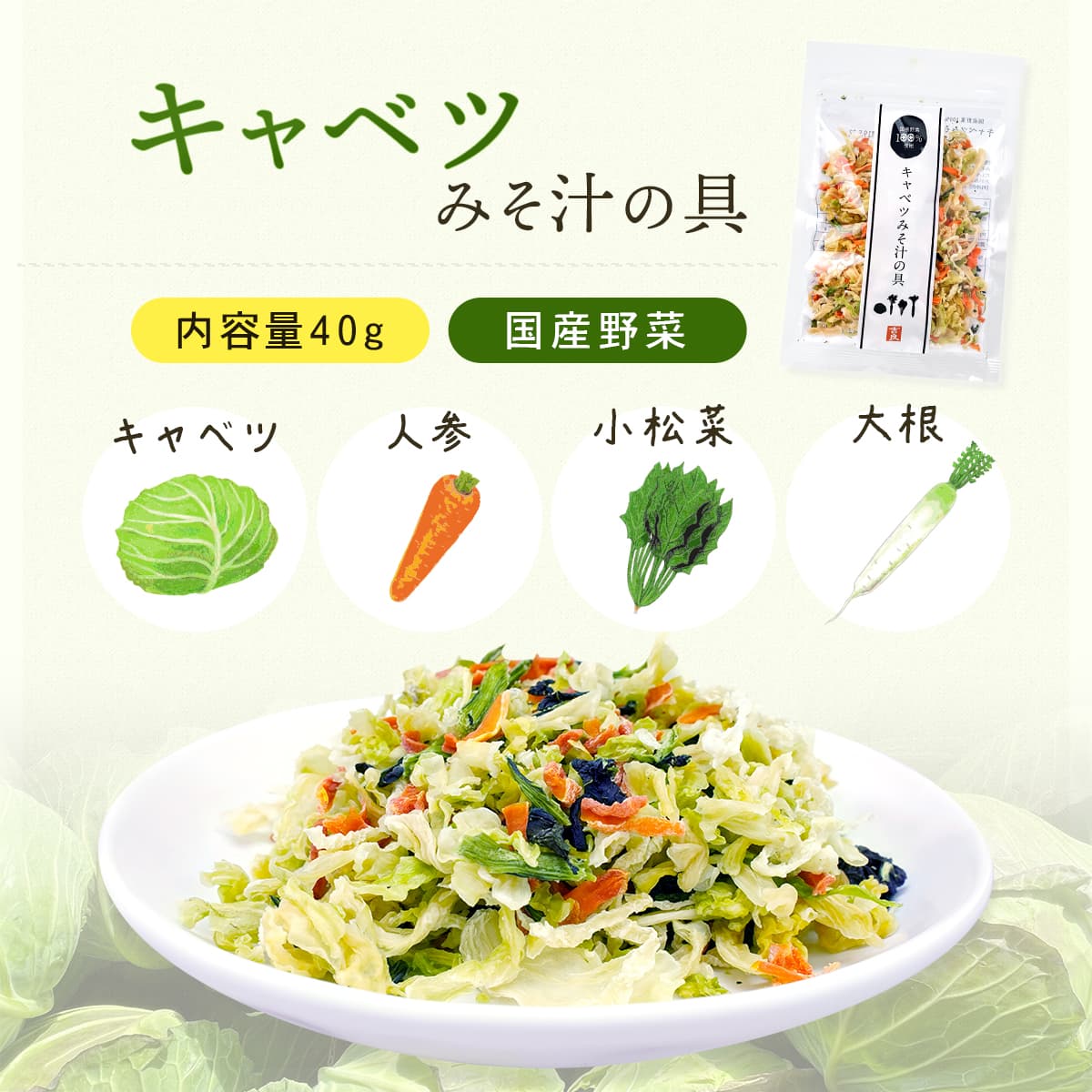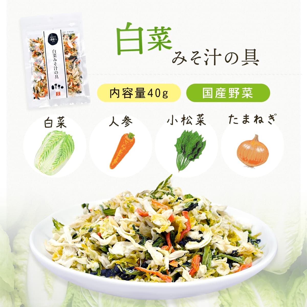キャベツみそ汁の具は キャベツ / 人参 / 小松菜 / 大根 、 白菜みそ汁の具は 白菜 / 人参 / 小松菜 / 玉ねぎ