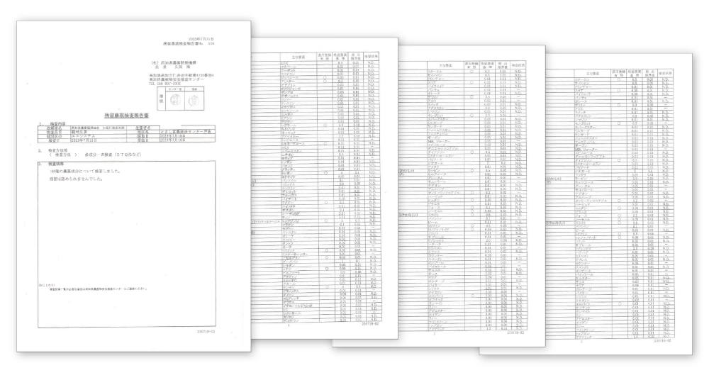 さらに、お客様に安心してご愛飲頂くために、残留農薬検査を実施しています。
