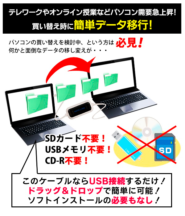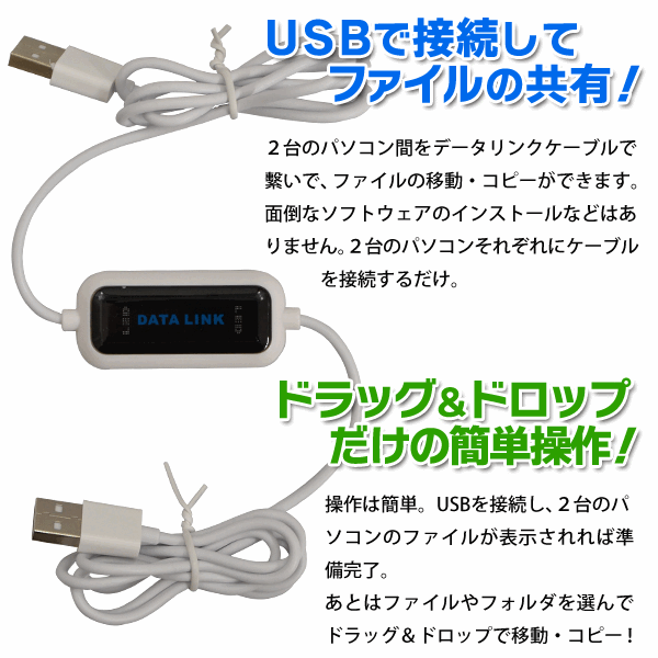 送料無料 送込 送料込 簡単 データ移行 有線 PCデータ転送 データ共有 データシェア インストール不要 簡単操作 高速 バックアップ ドラッグ&ドロップ対応 リンクケーブル PC間のデータ移動に最適 USBリンクケーブル USBケーブル 2台のパソコン 有線 完全共有 USBリンクケーブル ドラッグ&ドロップだけでPCデータ転送 簡単操作 USB接続 インストール不要 Windows8 10対応 データ移行 ファイルコピー XP Windows7 引っ越し 移動 異動 バックアップ データ保存 便利 初心者 分かりやすい 爆買