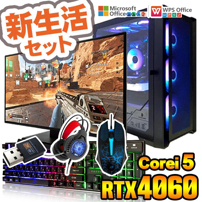 今日も当日発送 ゲーミングPC デスクトップ RTX4060 第12世代 Corei5 Windows11 SSD 500GB メモリ16GB ゲーミング 新品 パソコン 安い ゲーム