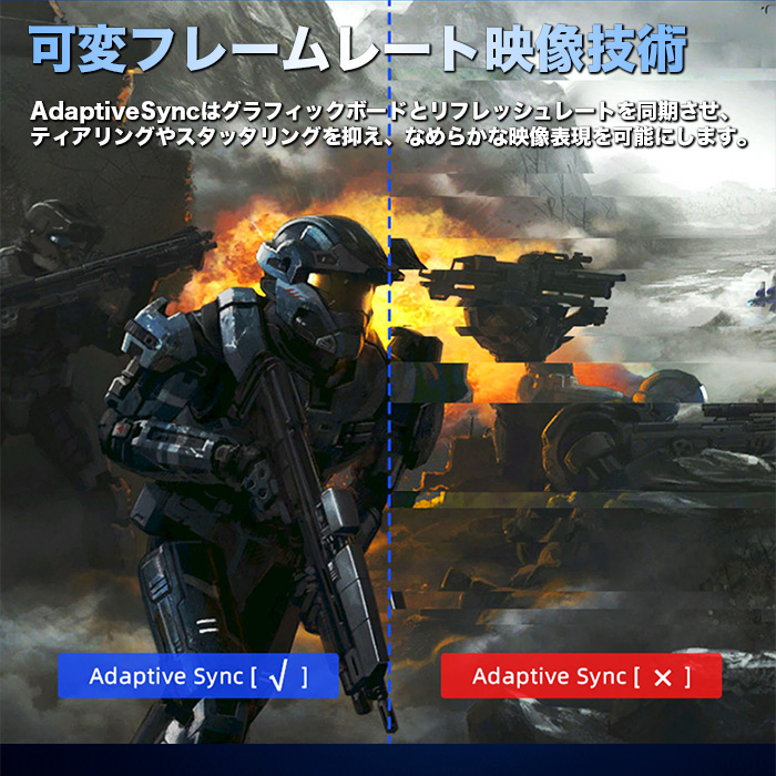 Adaptive Sync機能により、画面のちらつきや引っかかりを抑え、ゲーム中の動きをスムーズにします。