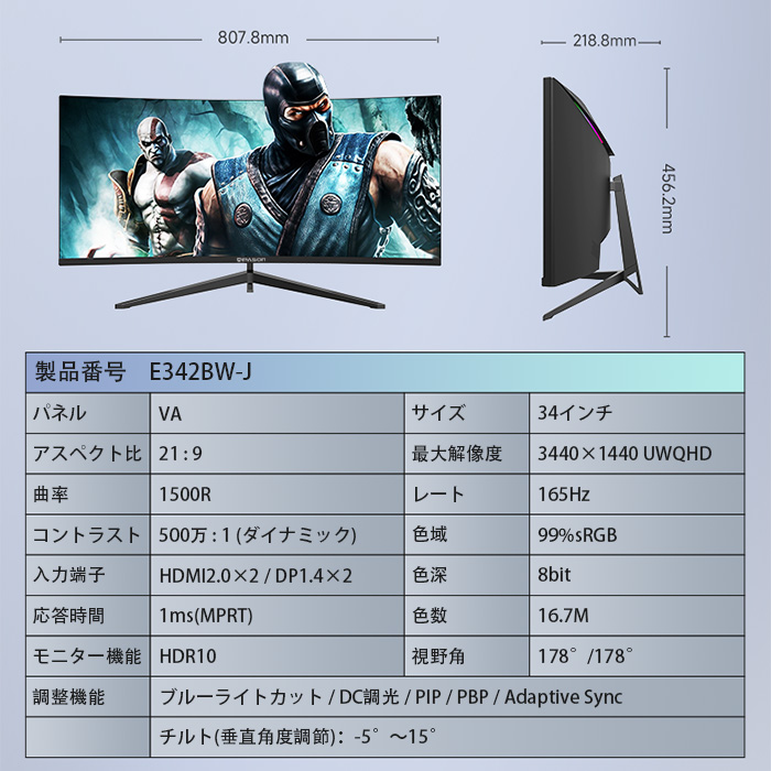 このモニターは、UWQHDの3440×1440の超高解像度を誇り、21:9のアスペクト比で広大な視野を提供します。