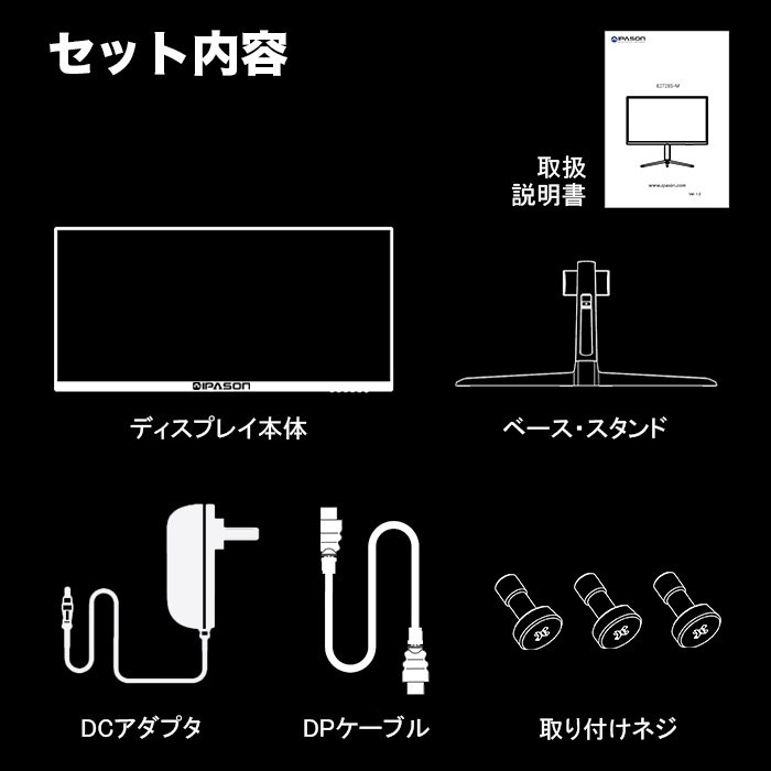 付属品:電源アダプタ DisplayPortケーブル ネジ 取扱説明書