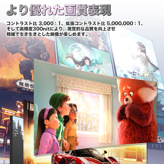 ゲームだけでなく、映画鑑賞や作業用途にも幅広く活用できる、多機能なディスプレイです。