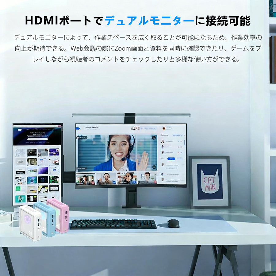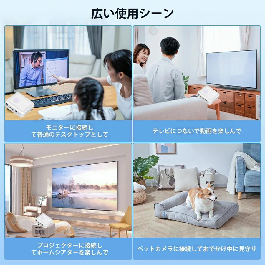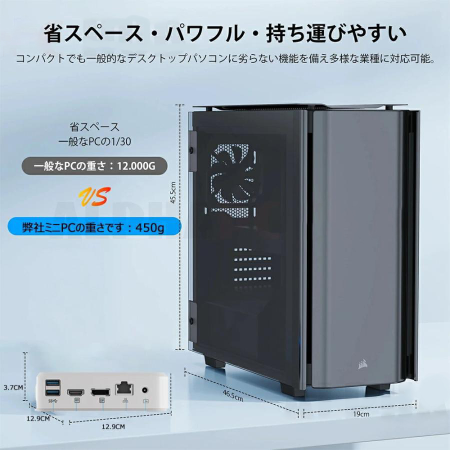mini pcの重量約0.45Kg、薄型で持ち運びに負担を減らせます!小さなカバンやハンドバッグにも収納できるビジネスやプライベートの外出先での使用など、コンパクトで持ち運びなので、外出時に携帯しても身体に負担がかからない。