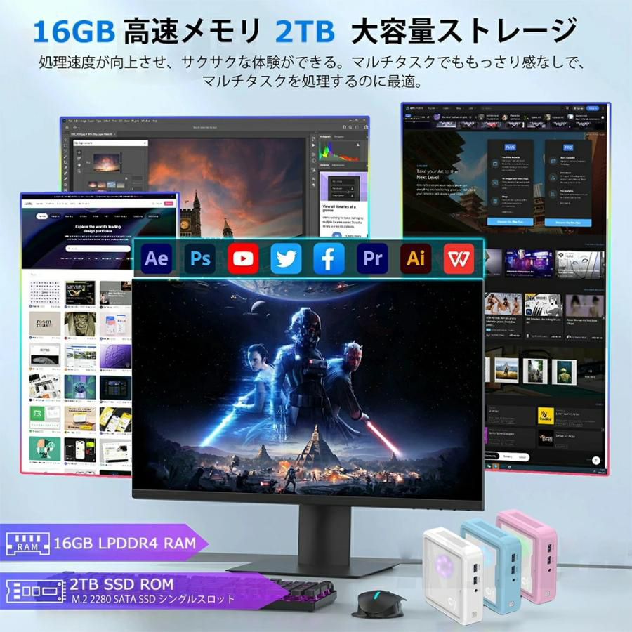 WIFI 小型pc メモリ16GB SSD1TB 静音 省スペースpc 初期設定済