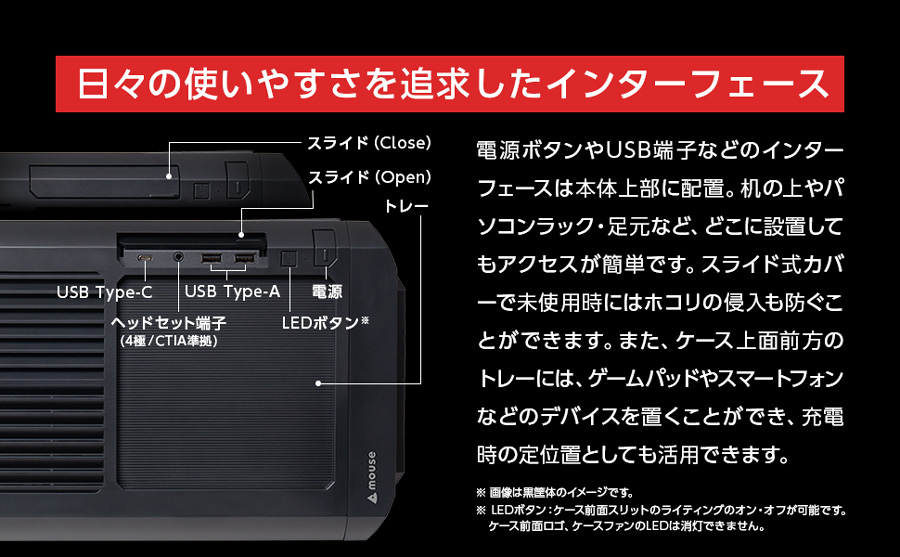 上面: USB 3.2 Gen 1 (5Gbps)×1 ※Type-C端子は画像出力に非対応となります。