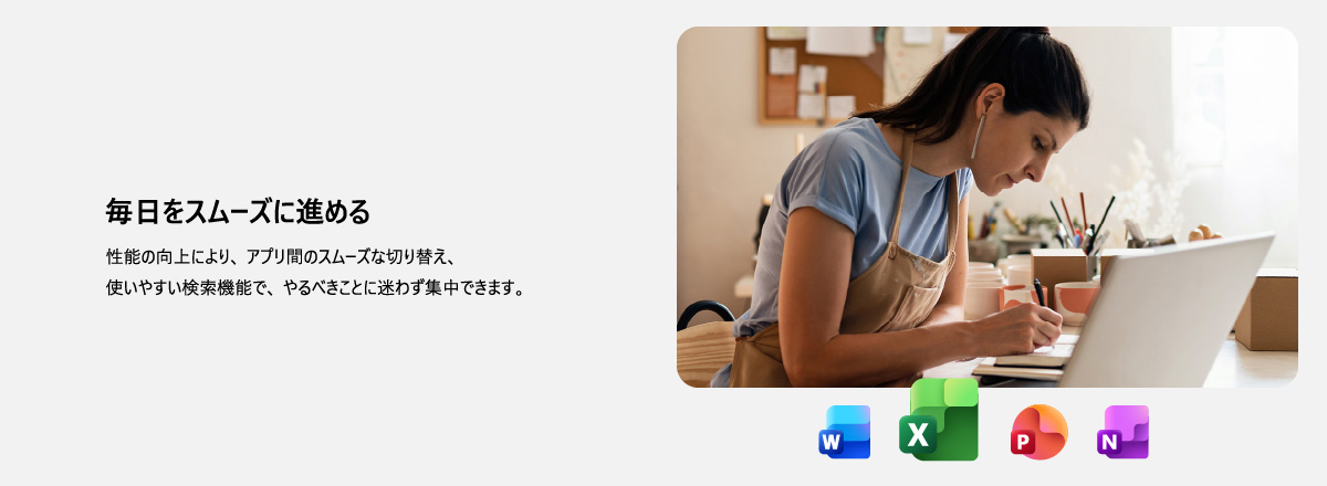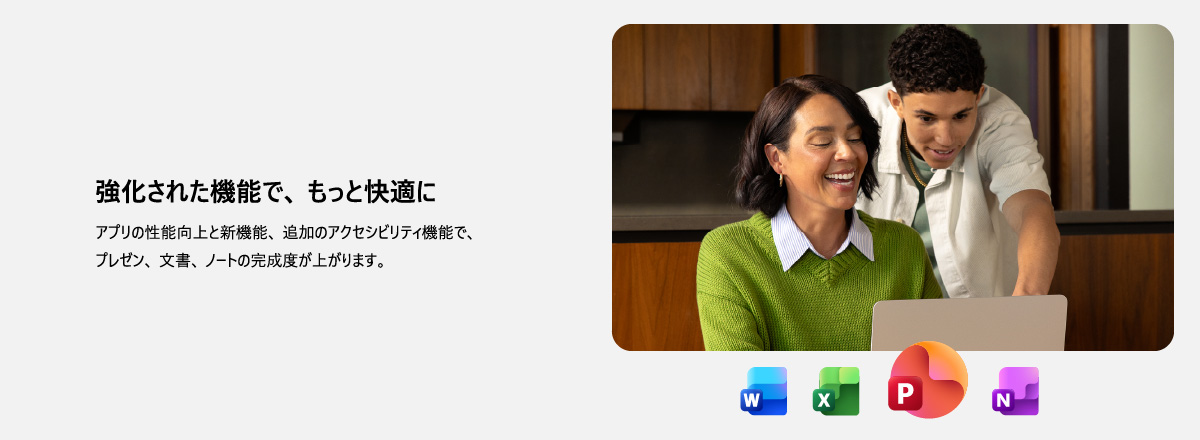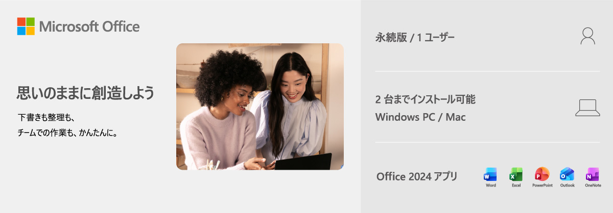 Microsoft 365 は Windows PC、Mac、Android、iOS に対応しています。Office 2024 は Windows PC、Mac に対応しています。デバイスの互換バージョンや機能要件について詳しくは、 aka.ms/officesysreq をご覧ください。