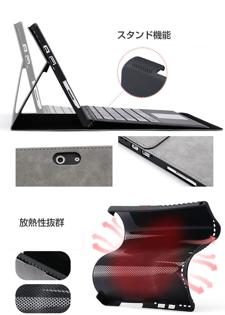 Microsoft Surface Go 4 10.5インチ ケース カバー 手帳型 PUレザー スタンド機能 キーボード収納可能です 手帳型カバー 電源収納ポーチ付き