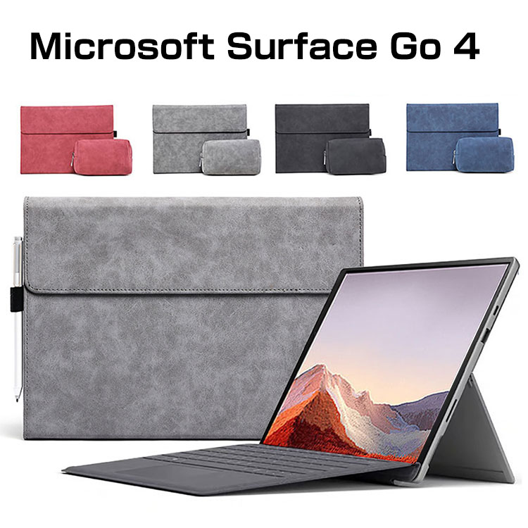 マイクロソフト サーフェス Microsoft Surface Go 4 10.5インチ 2-in-1ノートPC ケース カバー 手帳型 PUレザー おしゃれ CASE 手帳型カバー スタンド機能 キーボード収納可能です ブック型 カッコいい 便利 実用 人気 おすすめ おしゃれ 手帳型カバー 電源収納ポーチ付き