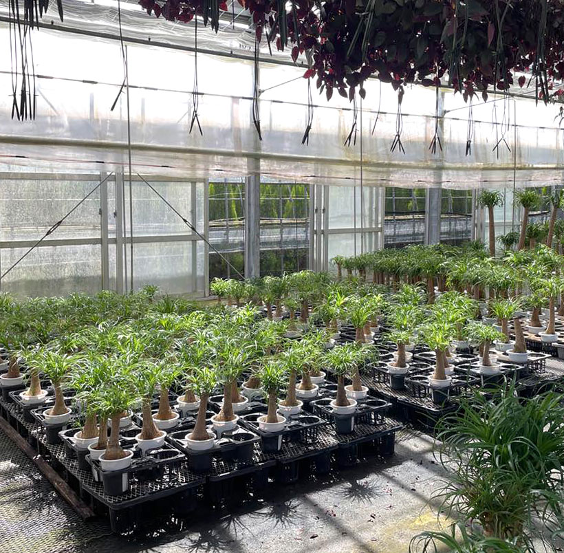 ポニーテールは8号鉢、10号鉢といった「大鉢サイズ」が流通量としては圧倒的に多いです。一年を通して流通してます。