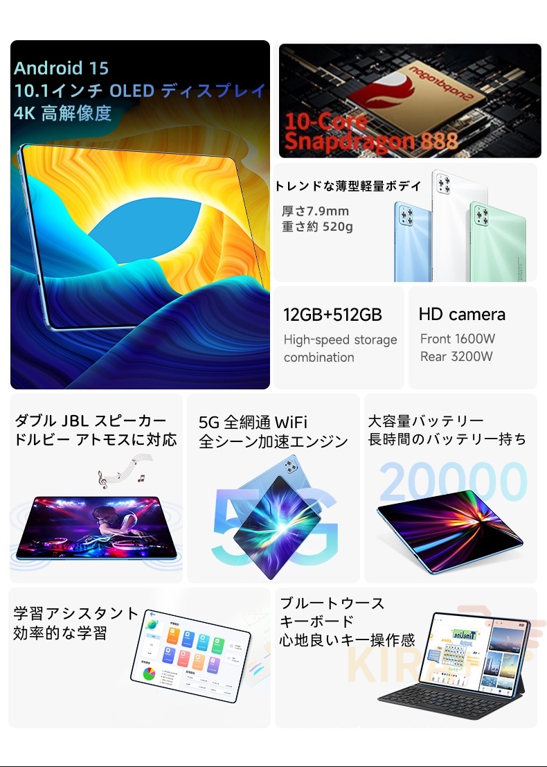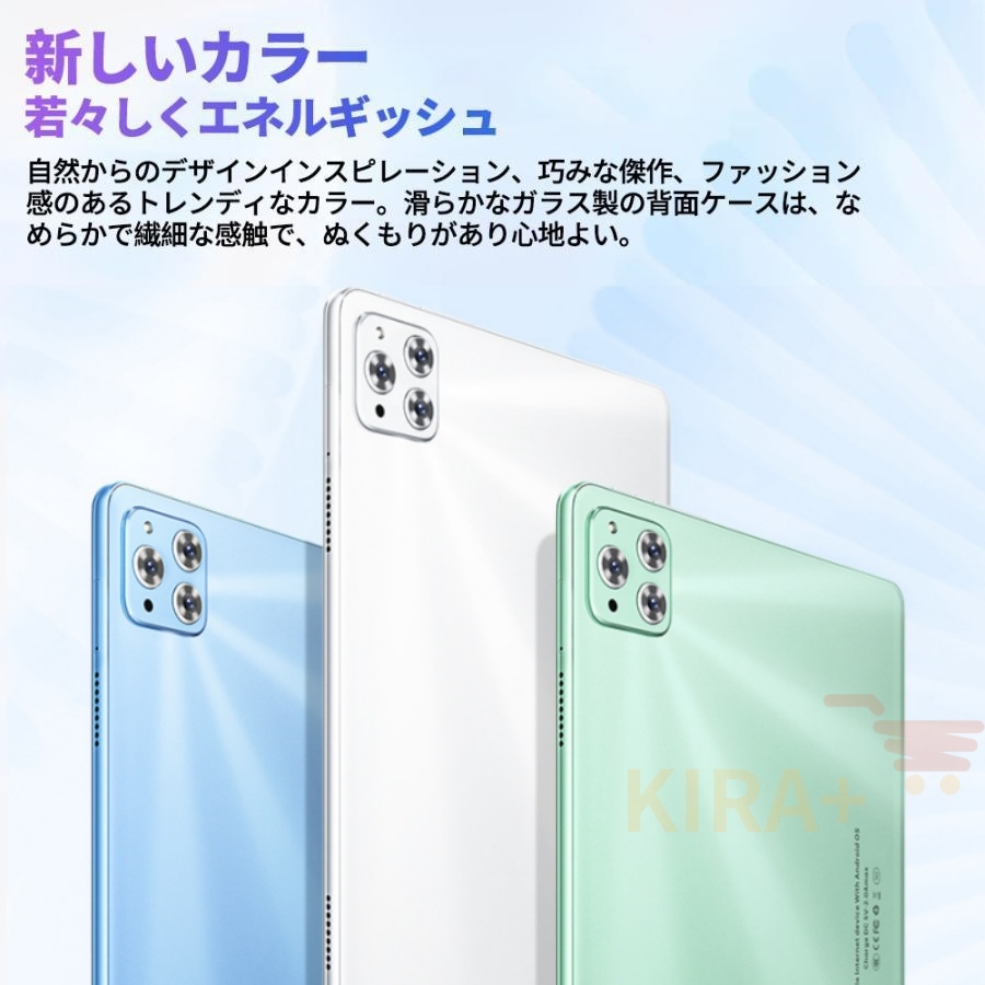 ※異なるレンズでタブレットの実物を撮影する際、さまざまな程度の透視歪みが発生する可能性があります。この歪みにより、タブレットの枠が写真上で実際よりも狭く見える場合があります。ただし、タブレット本体には枠が存在しており、枠のサイズは実物を基準としますので、ご了承ください。
