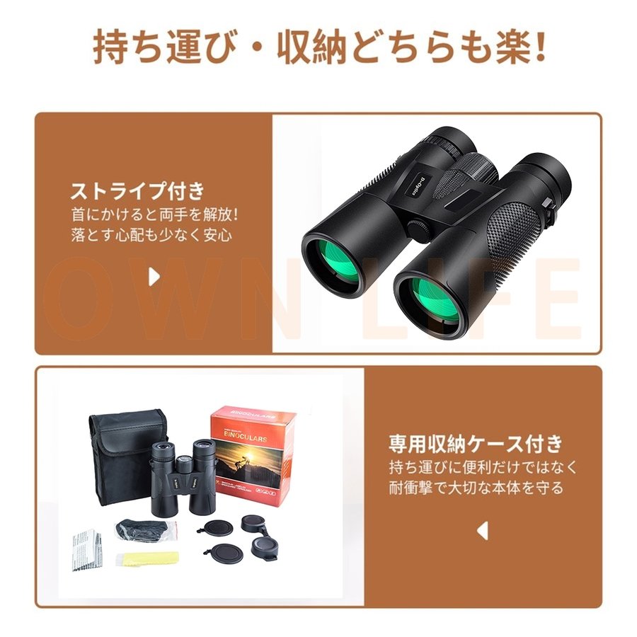 ●折り畳み式で、12倍の高倍率/高性能双眼鏡は、クリアな視界で高い解像度を実現します。