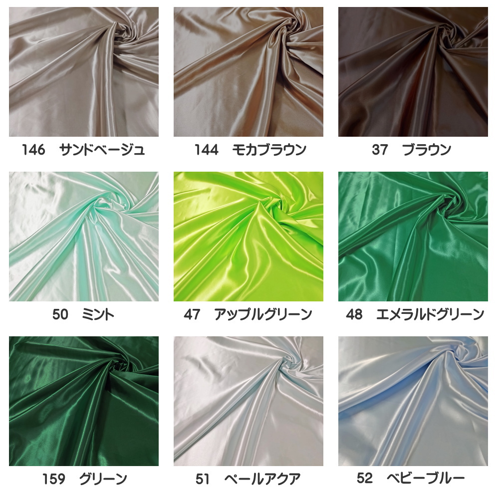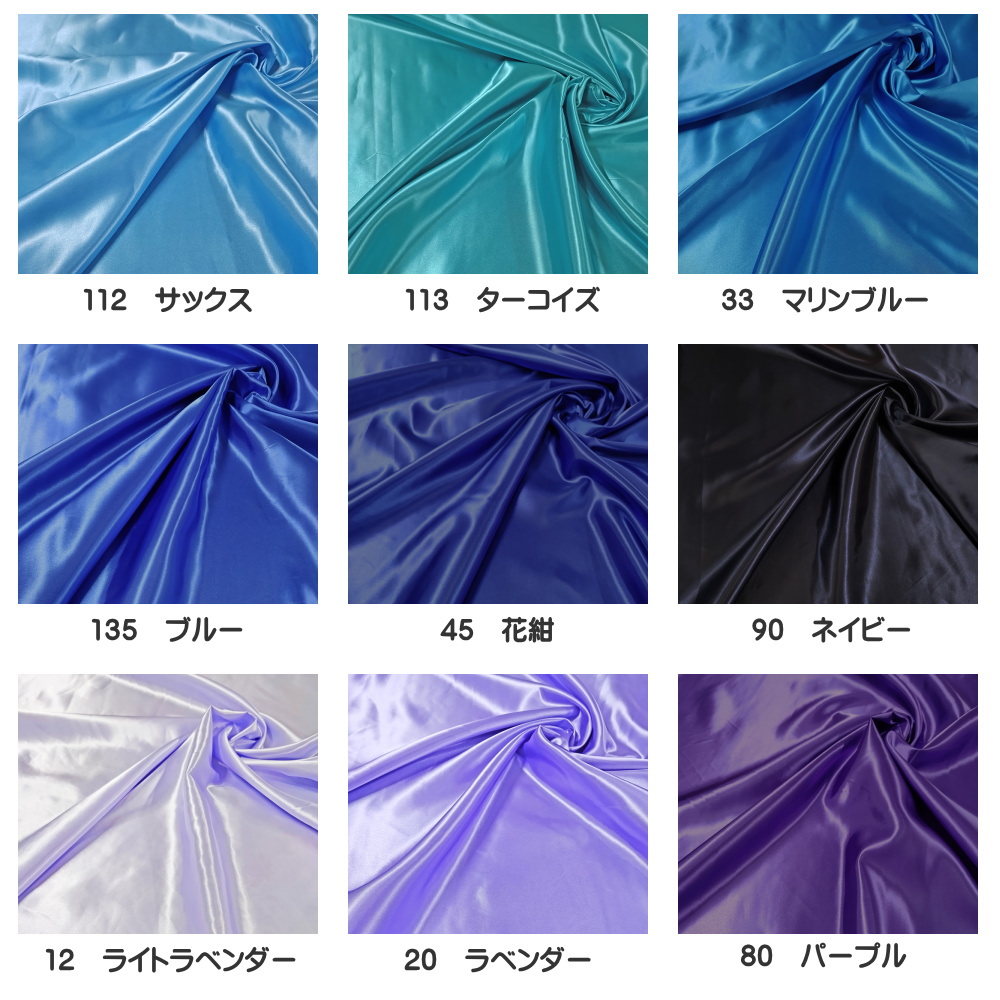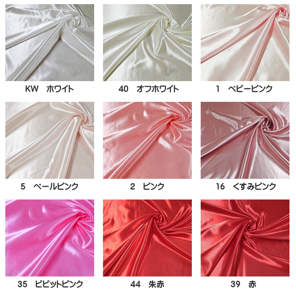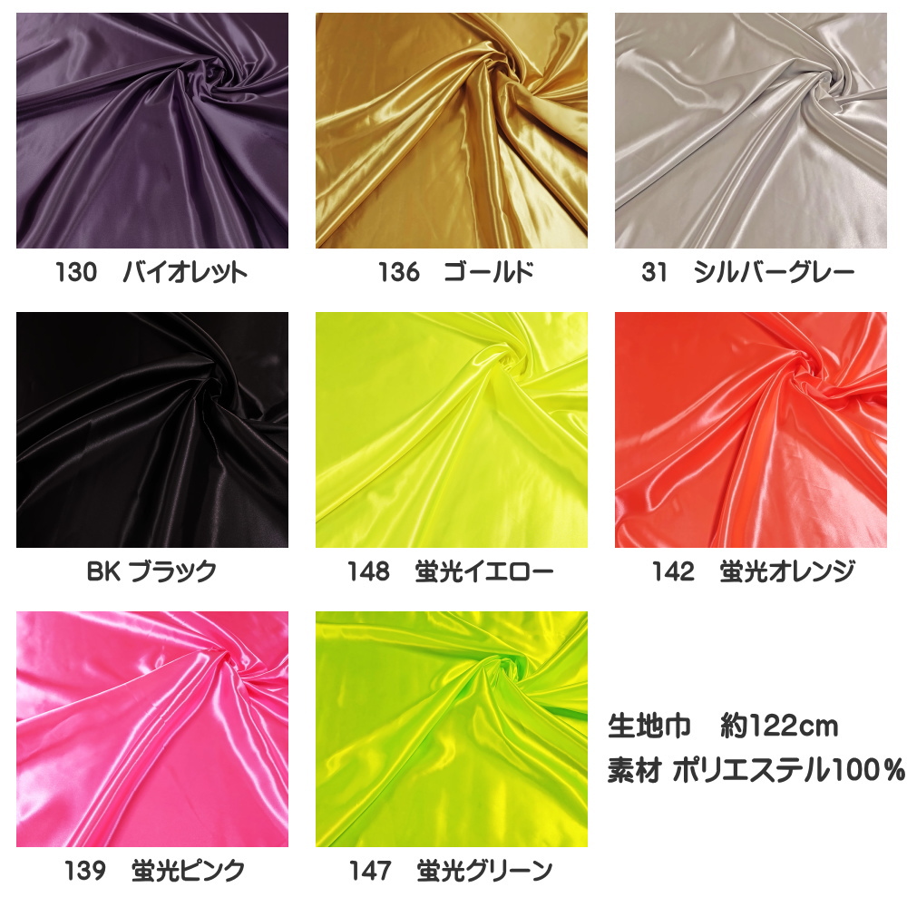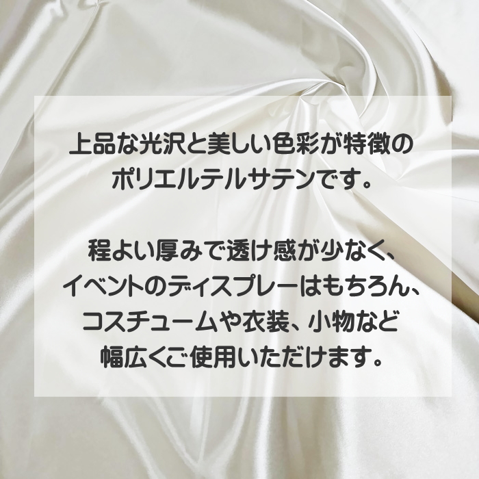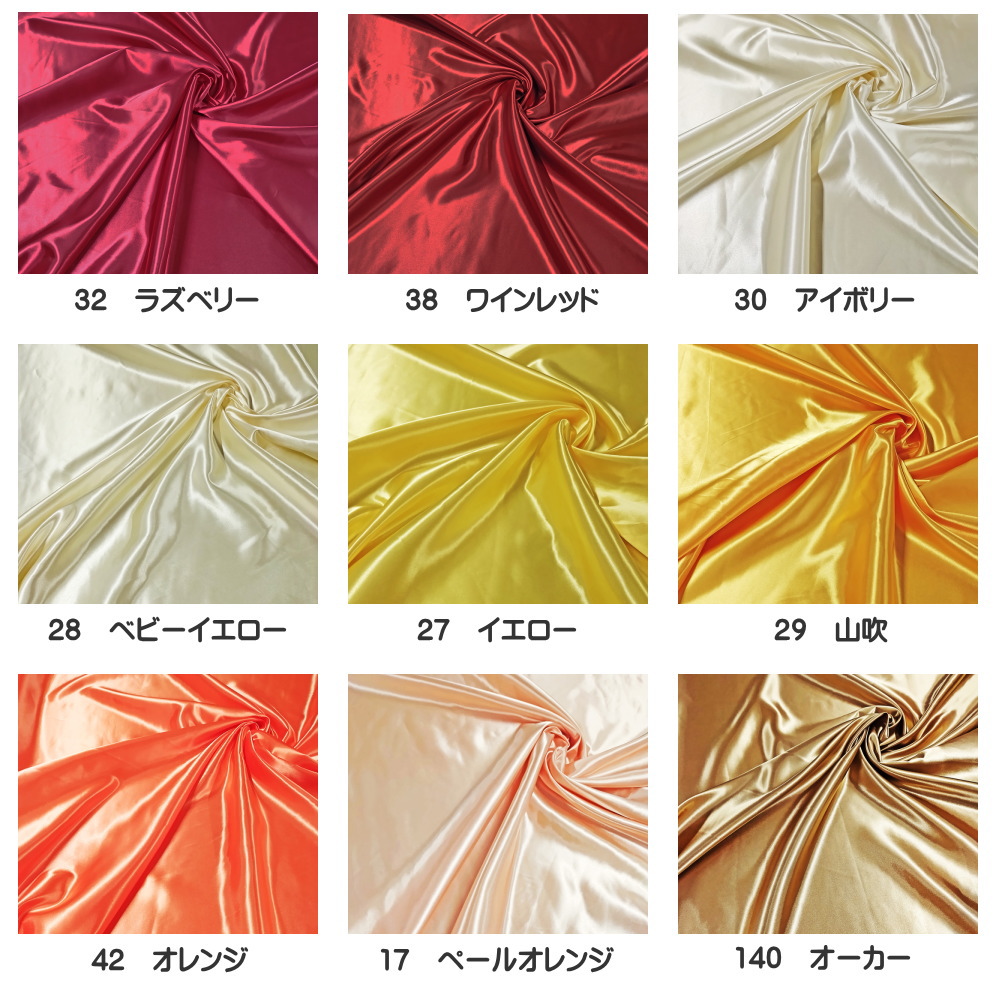 上品な光沢と美しい色彩【ポリエステルサテン】<無地>コスチュームや衣装、小物など幅広くご使用いただけます。【東レ シルックサテン】