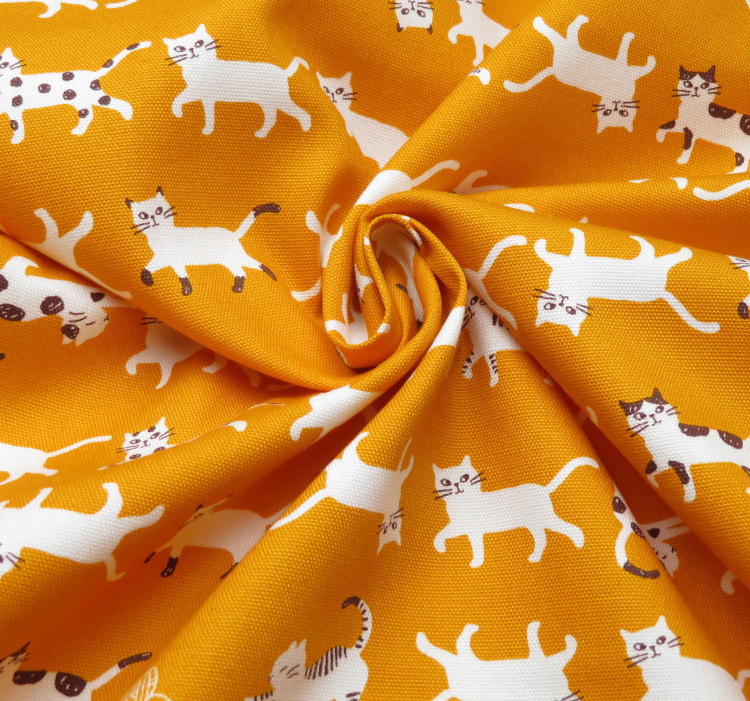 猫柄 生地 108cm巾 コットンオックス≪きまぐれにゃんこ≫日本製 Simply palette【10cm単位】