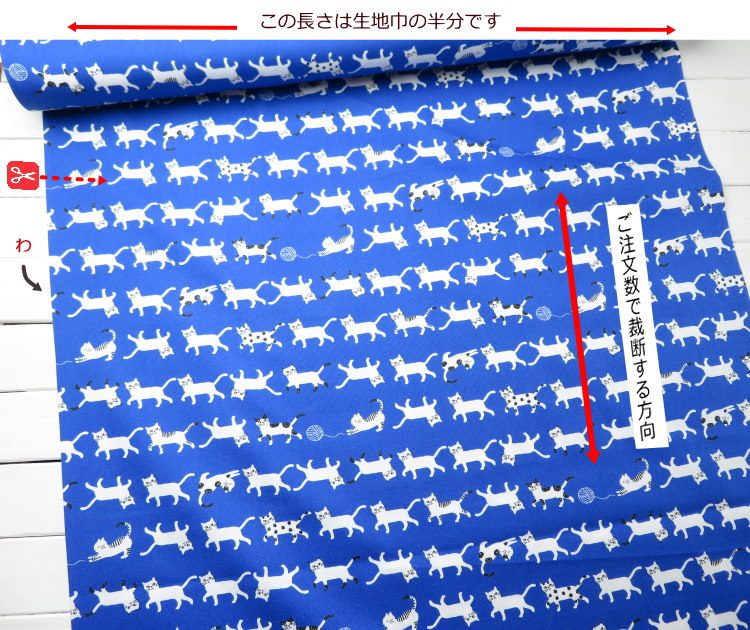 トコトコ歩く姿が可愛いにゃんこがいっぱいの楽しいプリント生地です。
