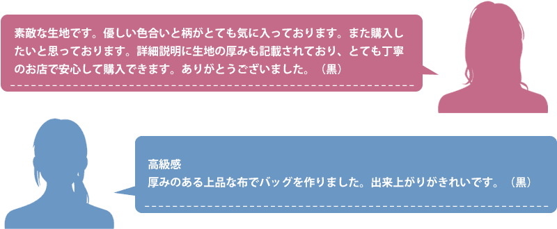 ※お客様のご注文によりカットされた生地は再販売出来ませんので、不良品、商品違い以外のお客様都合でのご返品はお受けできません(ただし未使用品に限る)。予めご了承の上、ご注文ください。