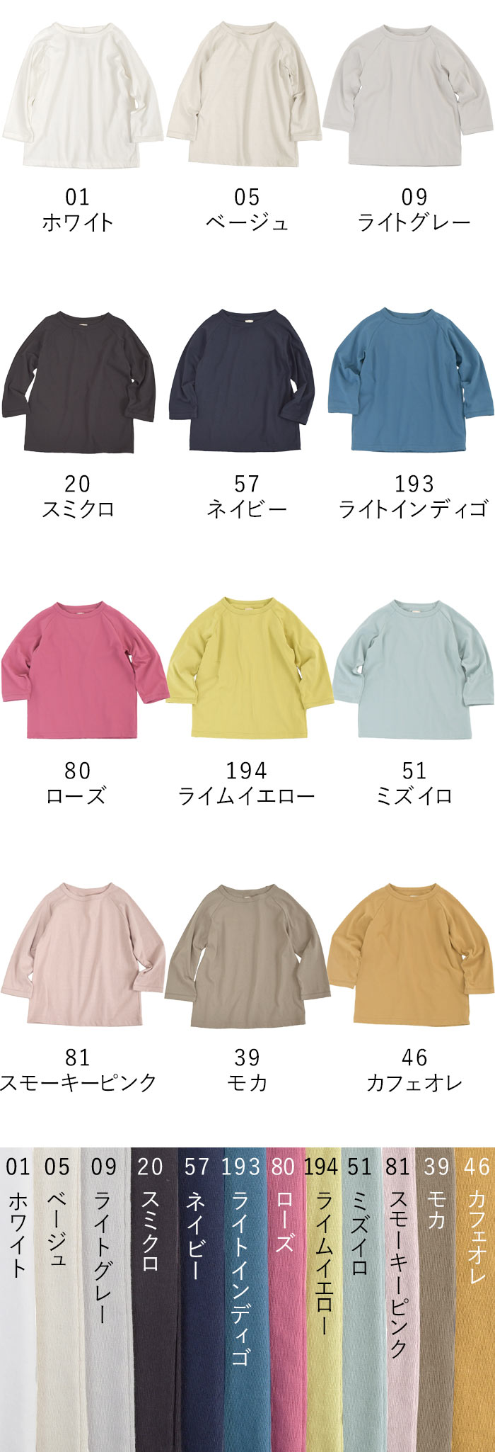 日本製 綿100% オリジナル ラグランTシャツ カットソー M〜3L 16番手天竺/カジュアル ナチュラル コットン 体型カバー エコロコ e+ Ms,Ls,LL,3L,/七分袖 レディース- 30代 40代 50代 大きいサイズ 春 秋 冬 ホワイト 白 ベージュ ライトグレー 灰色 スミクロ 紺 ネイビー ライトインディゴ ブルー ピンク ローズ ライムイエロー 黄色 水色 ミズイロ ライトブルー スモーキーピンク モカ ブラウン カフェオレ 赤 レッド マスタード 黄色 ペールグレー 灰色