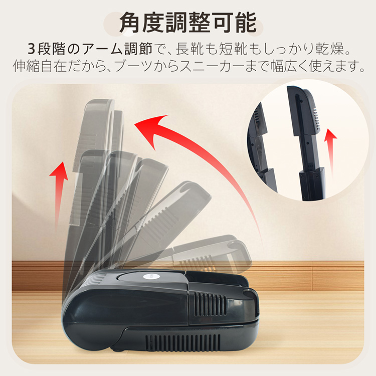 ■角度調整&伸縮アーム搭載でスニーカーからブーツまで幅広く対応