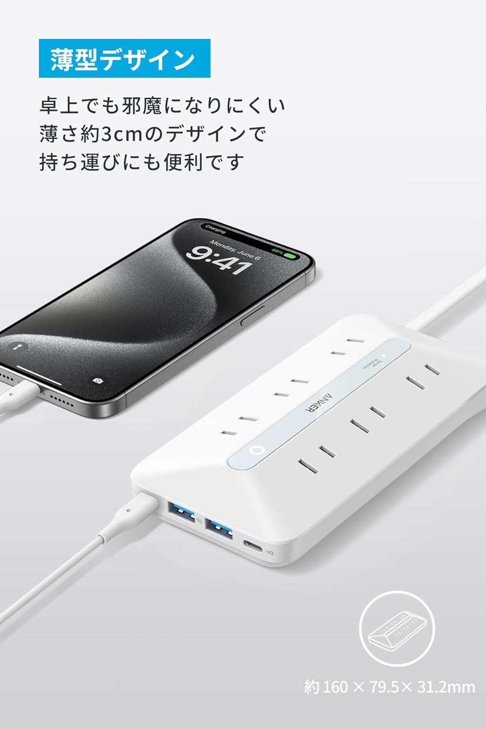 ・パッケージステッカーには「Anker 10-in-1 USB Power Strip White JP」とありますが、「Anker USB Power Strip (10-in-1, 20W)」と同一製品になります。
