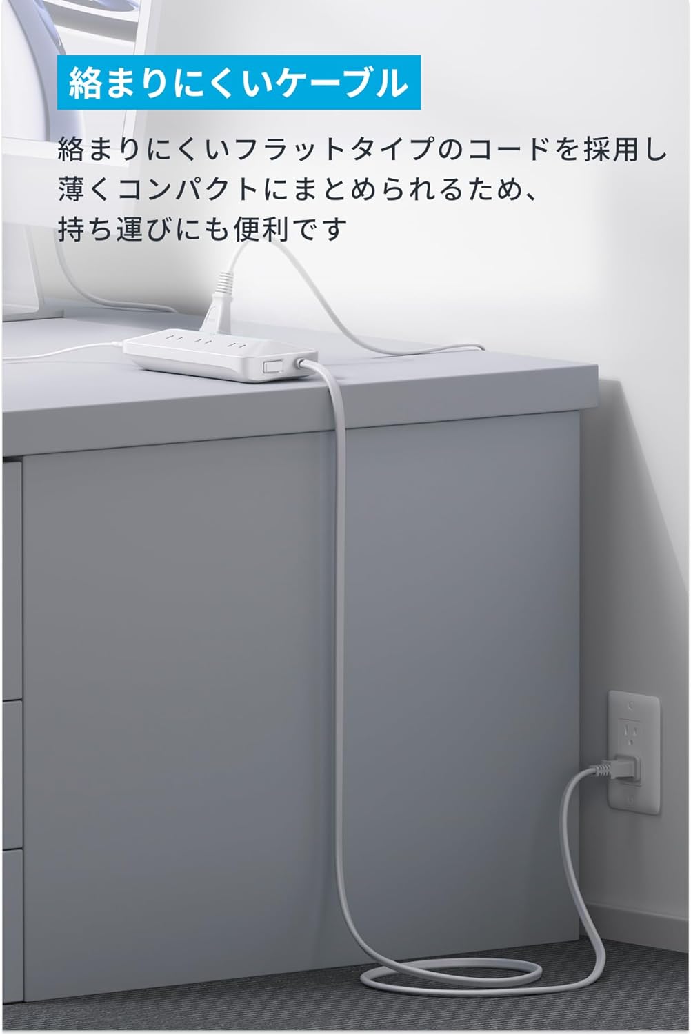 ・絡まりにくいケーブル内蔵:絡まりにくいフラットタイプのコードを採用し、薄くコンパクトにまとめられるため、 持ち運びにも便利です