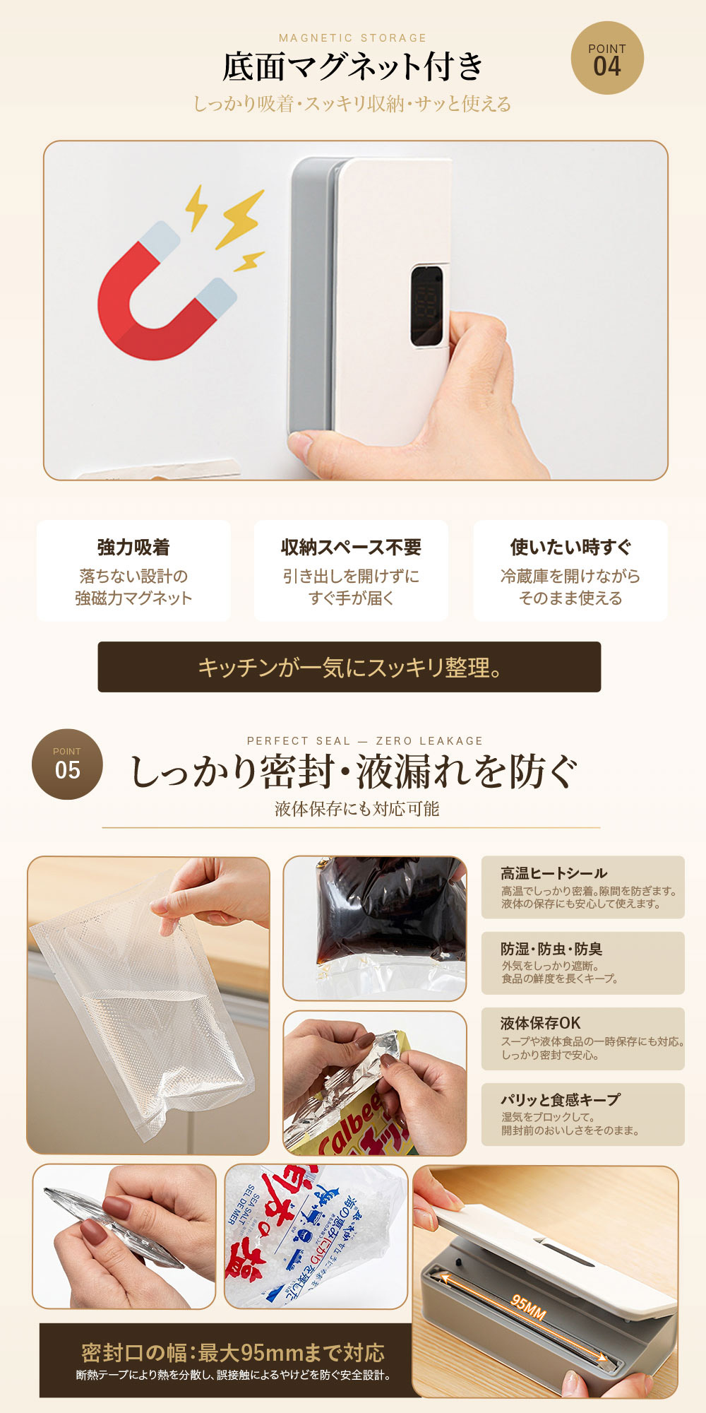 クリップ不要で簡単に食品の鮮度を守り、毎日の保存をもっと快適にします。