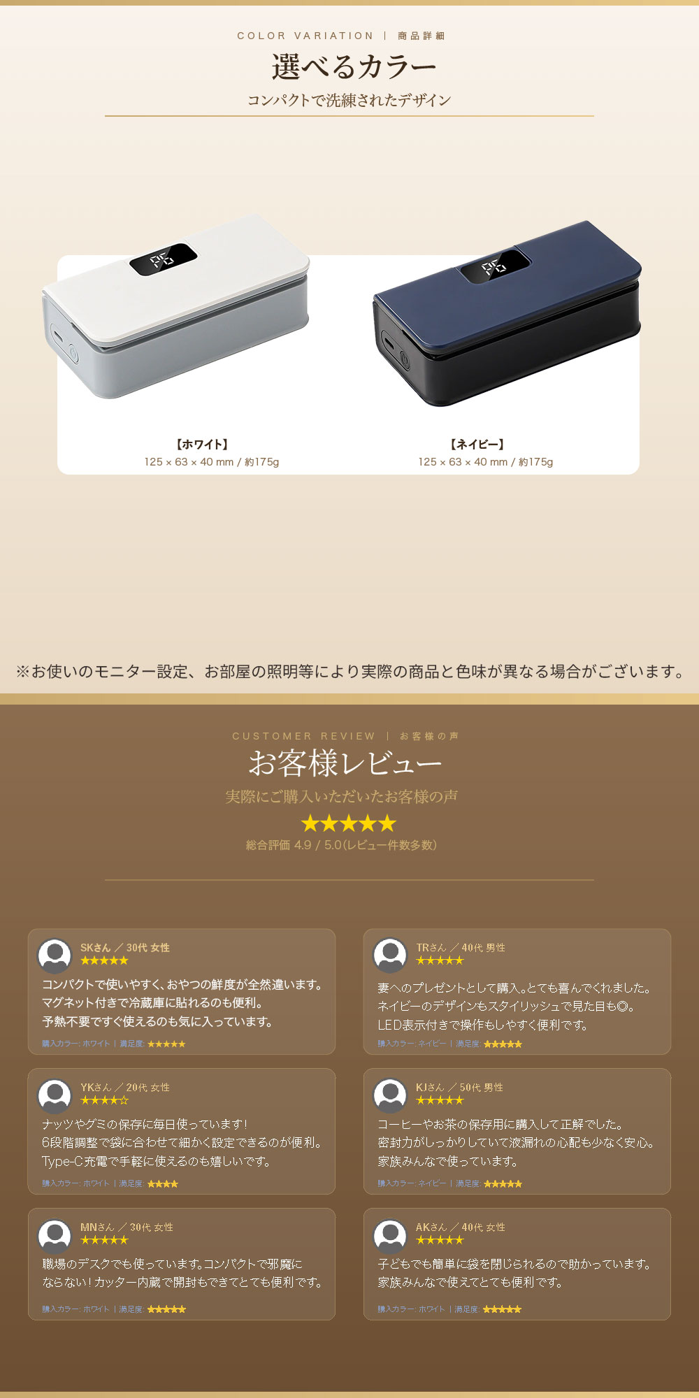 押すだけ簡単密封!鮮度・防湿・防臭をこれ1台でしっかりキープ