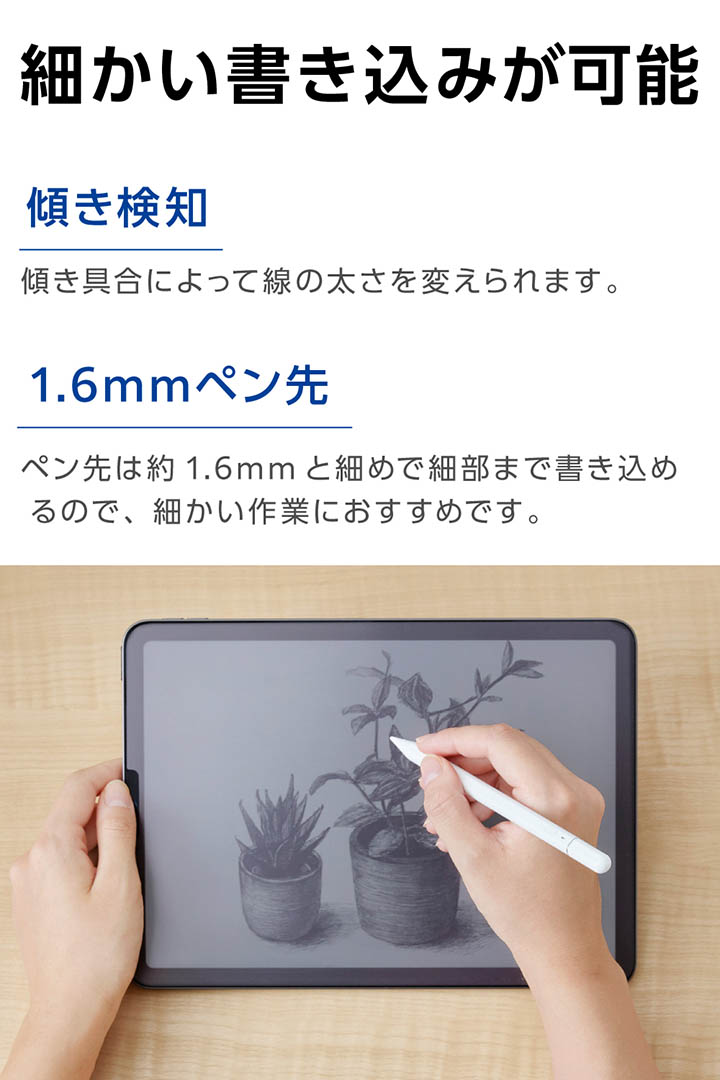 ■※金属製のペン先を使用する場合は、iPadの画面を傷付ける恐れがあるため、必ず画面保護フィルムを貼ってご使用ください。