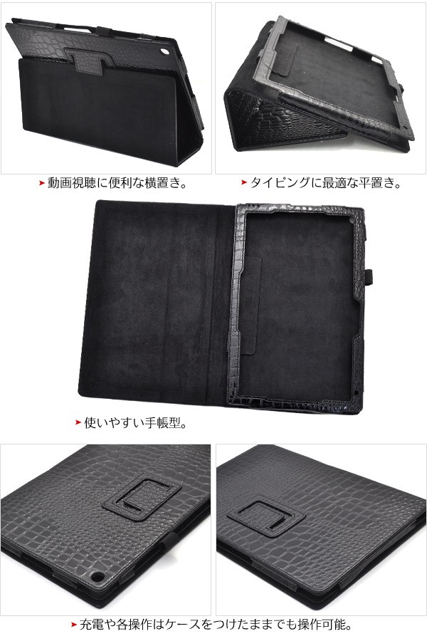 Xperia Z2 Tablet SO-05F ケース 手帳型 ワニ革合皮 スタンド機能付き タブレットケース