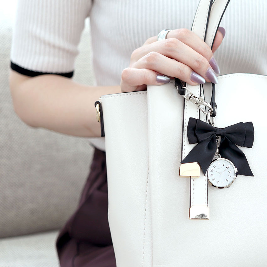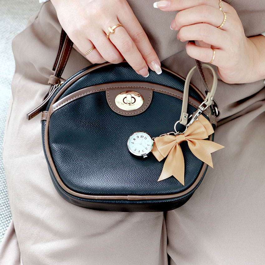 キーホルダー感覚でかばんにつけてアクセントに。時間も確認できて一つで二役!1年保証付ですので、お困りの際は弊社修理センターへご送付ください!