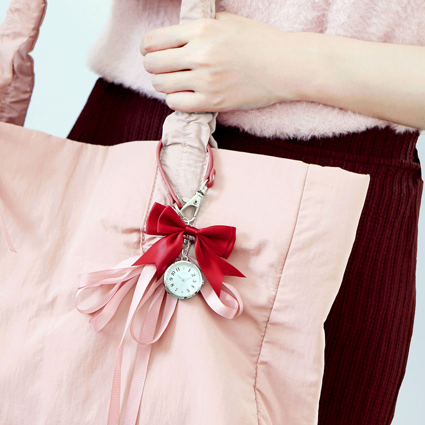 キーチェーン 時計 リブピ ストラップキーチェーン リボン かわいい 見やすい 通勤 仕事用 送料無料 小さめ 高見え 可愛い プチプラ フィールドワーク
