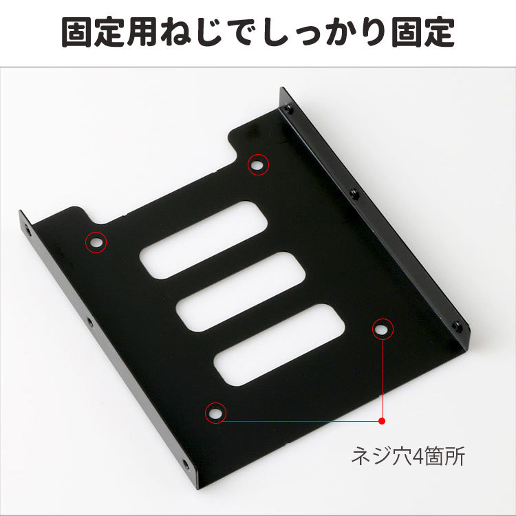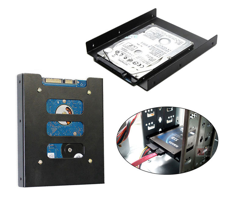 3.5インチのベイであれば、どの種類のパソコンでも簡単に2.5インチハードディスク2台までを取付け可能にします