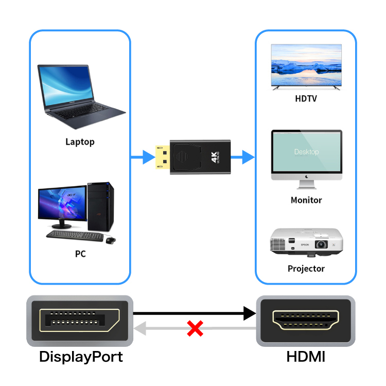 ※HDMI→DisplayPortへの逆変換はできません。