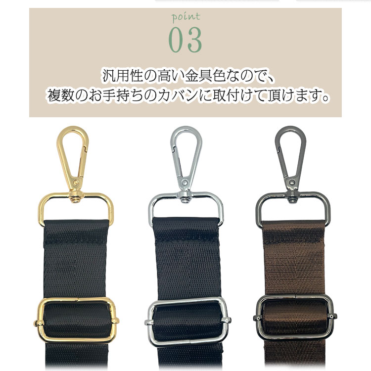 ショルダーストラップ 肩かけ ストラップ ショルダー 幅広 ナイロン カラビナ 付け替え 負担軽減 調節可能 シンプル 軽量 ウィメンズ バッグ カバン