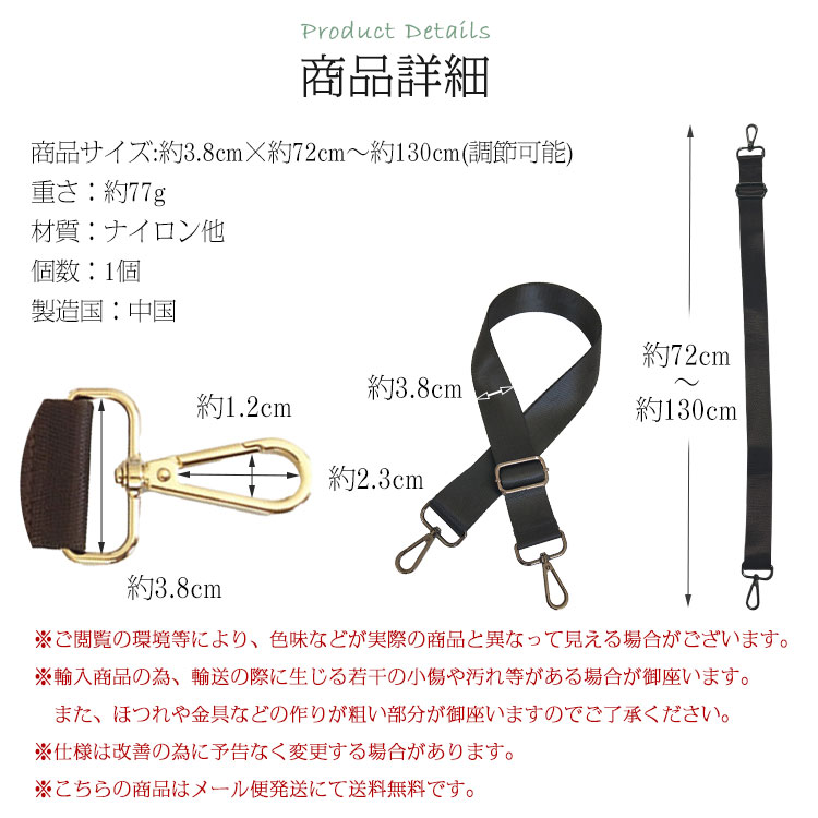 商品サイズ:約3.8cm×約72cm〜約130cm(調節可能)