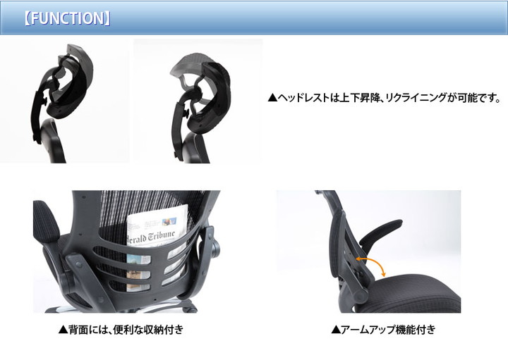 マスター3 メッシュチェア オフィスチェア アームアップチェア 上下昇降 ロッキング ヘッド昇降 ヘッドリクライニング 可動肘 パソコンチェア 肘 跳ね上げ