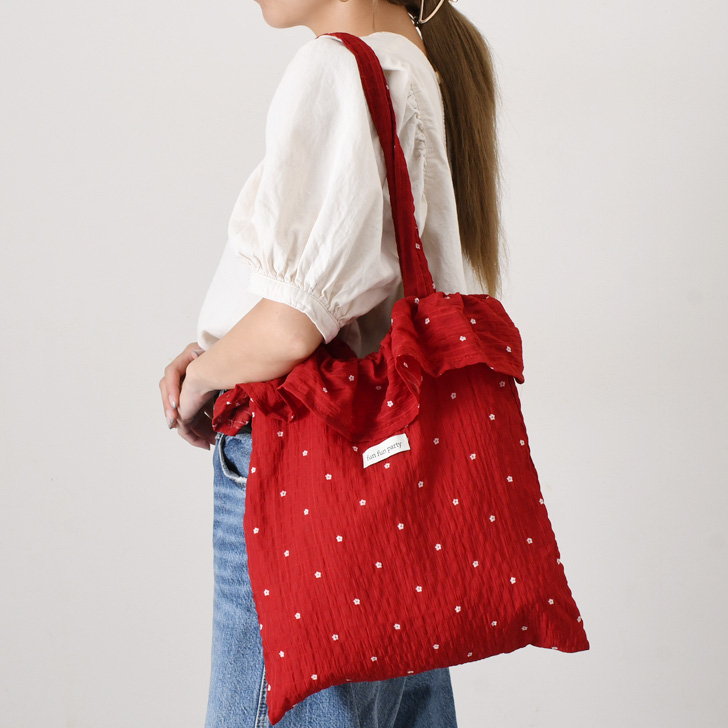 かるい かばん フリルバッグ フリルトート 花柄トートバッグ 花柄バッグ フラットバッグ 肩がけ 肩かけ 手持ち 柔らかい やわらか 軽め 小花柄 マチなし フラット 縦長 持ち歩き 持ち運び 女性 女子 女の子 中学生 大学生 高校生 学校 女子高生 学生 JK 双子 ペアルック お揃い ショッピング 買い物 トラベル 観光 舞台 フェス 現場 推し活 オタ活 推し事 女子会 韓国ガーリー キュート お洒落 オシャレ こなれ感 量産系 ロリータ 甘め 甘い フリフリ ふりふり フワフワ ふわふわ モコモコ もこもこ くしゅくしゅ ふんわり シボ感 和装 夏祭り お祭り 10代 20代 30代 白 ホワイト 黒 ブラック 赤 レッド アイボリー 誕生日 お祝い バースデー 春 夏 秋 冬 春夏 秋冬 通年 オールシーズン