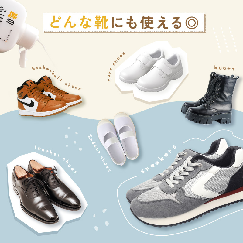 日常使いのスニーカーから革靴・ブーツ・仕事靴・部活用シューズまで幅広く対応。