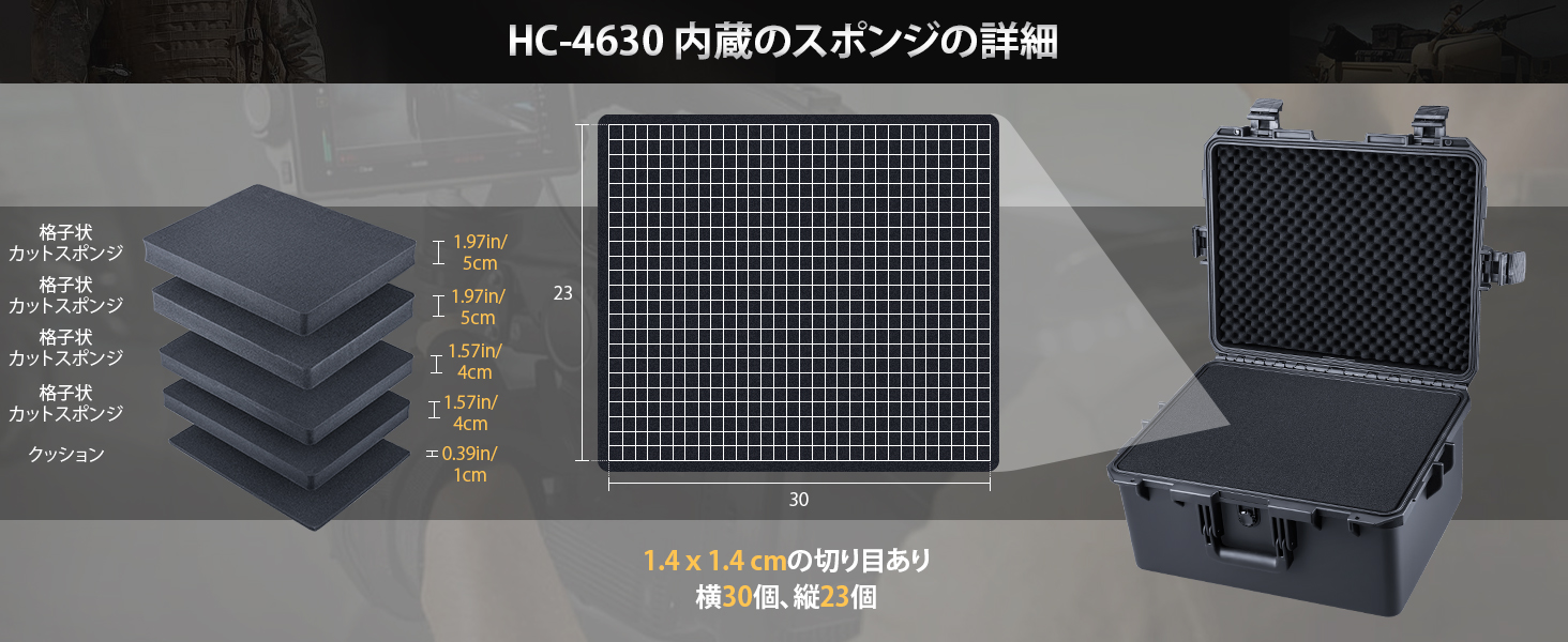 Lykus HC-4630 防水防塵 プロテクターケース 格子状カットスポンジ内蔵 内寸:45.8x35.8x24cm ノートPC ドローン カメラ レンズ Tablet SGS認証 IP67級