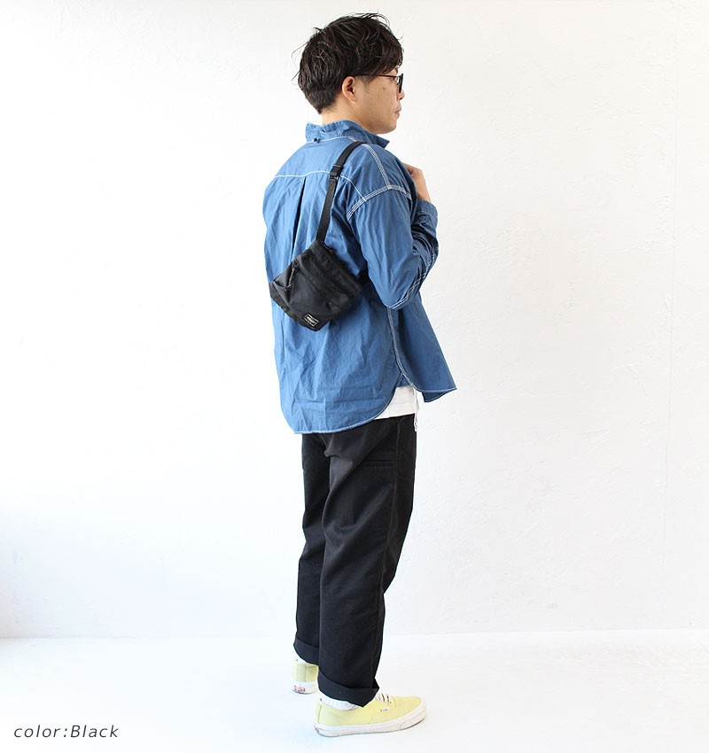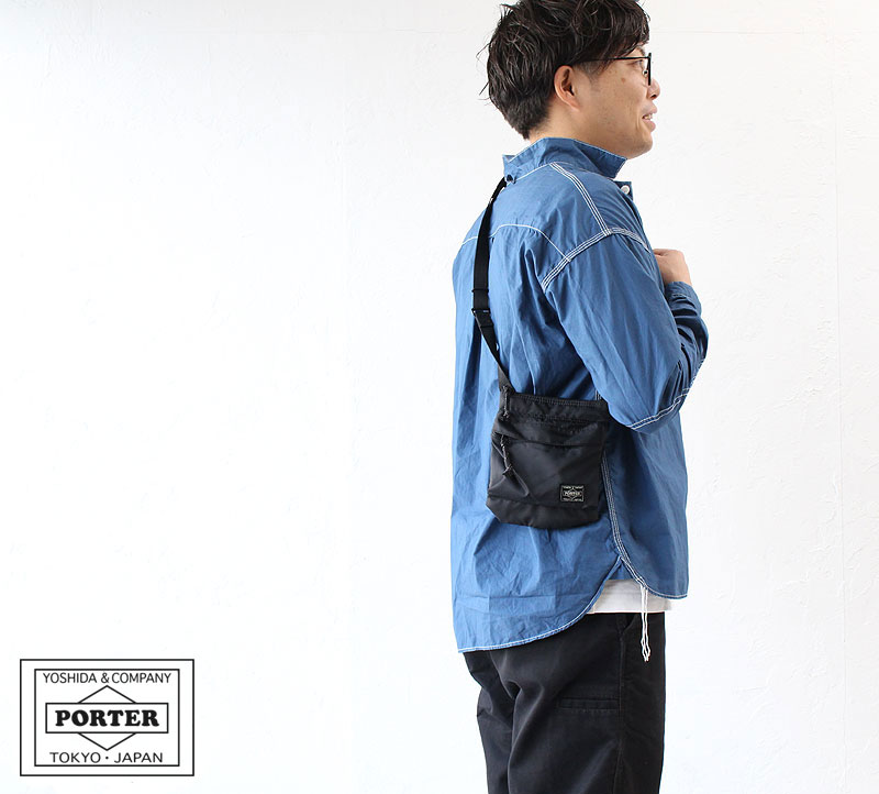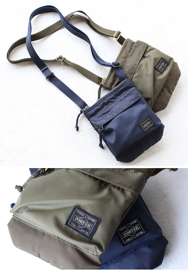 外観の生地の配色が楽しめるポーターのこだわりのある 「FORCE 」のショルダーポーチ。