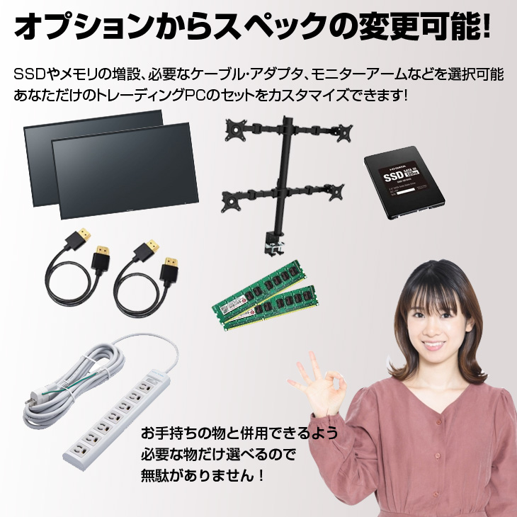 あなただけのカスタマイズでオリジナルトレーディングパソコンを作っていただけます。