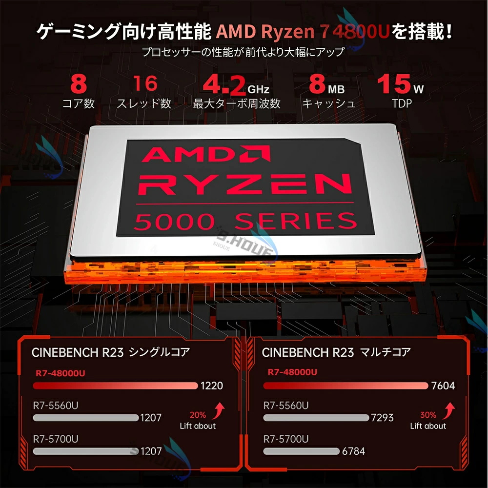 効率的なRyzen 7 4800Uプロセッサーを搭載したノートパソコンで、スムーズで信頼性の高い電源を体験してください。 8コア、16スレッド、最大4.2GHzのブーストクロックを備え、オフィスの生産性やウェブブラウジングからストリーミングメディアまで、