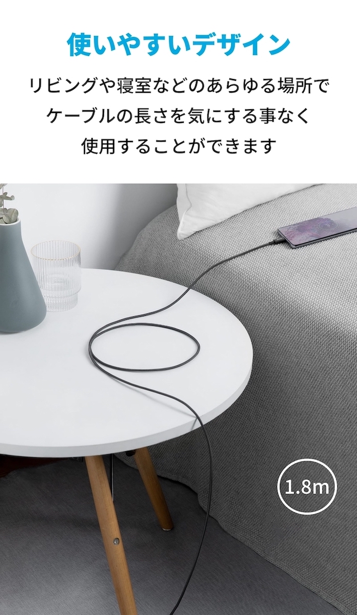 リビングや寝室などのあらゆる場所でケーブルの長さを気にする事なく使用することができます