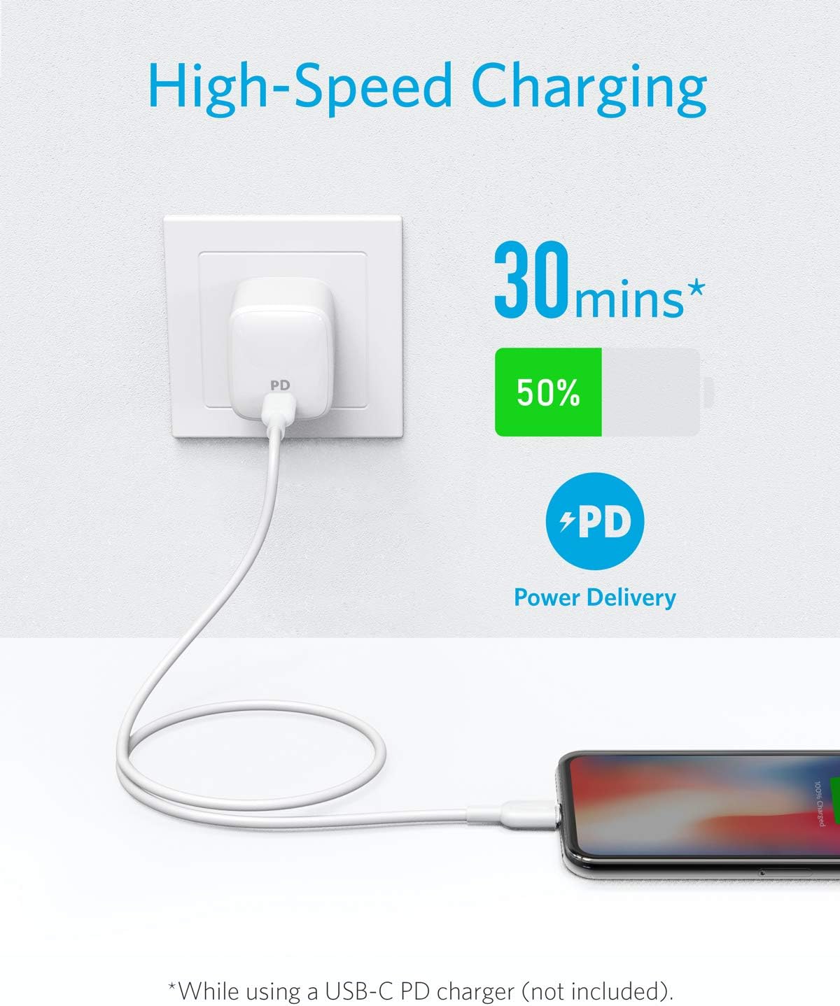 「Anker PowerPort Atom PD 1」や「Anker PowerPort ll PD - 1 PD and 1 PowerIQ 2.0」等のPower Delivery対応USB-C急速充電器を利用すれば、iPhone 11 、11 Pro、11 Pro Maxを含む最新のiPhoneへフルスピード充電が可能です。