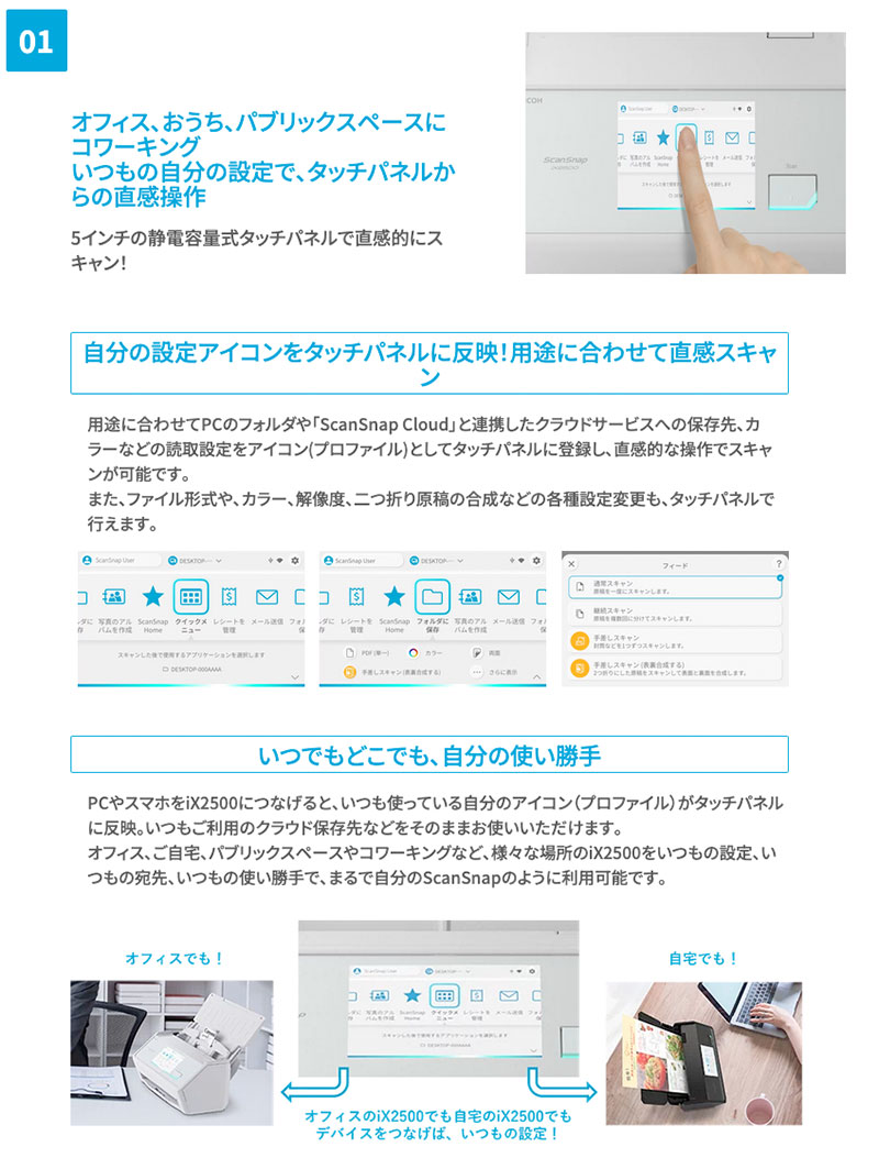 時・場所・デバイス、自由自在 直感操作のタッチパネルを搭載したフラッグシップスキャナー