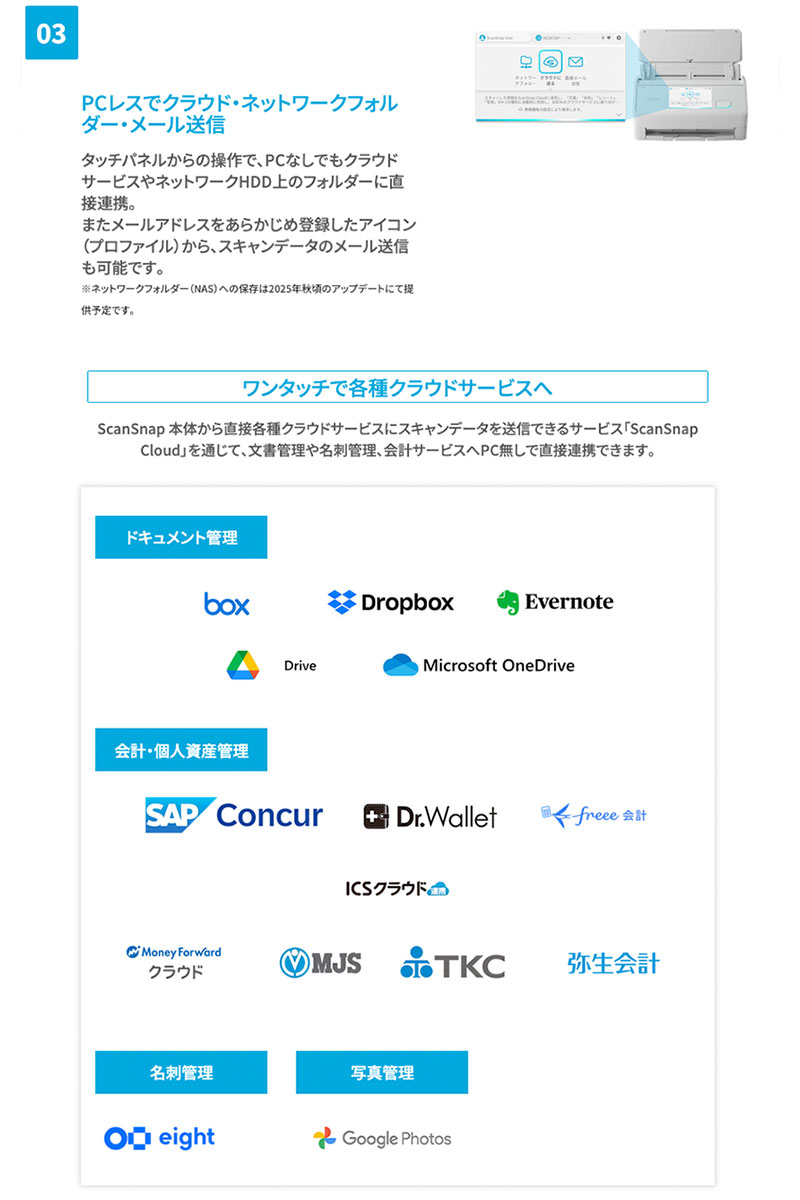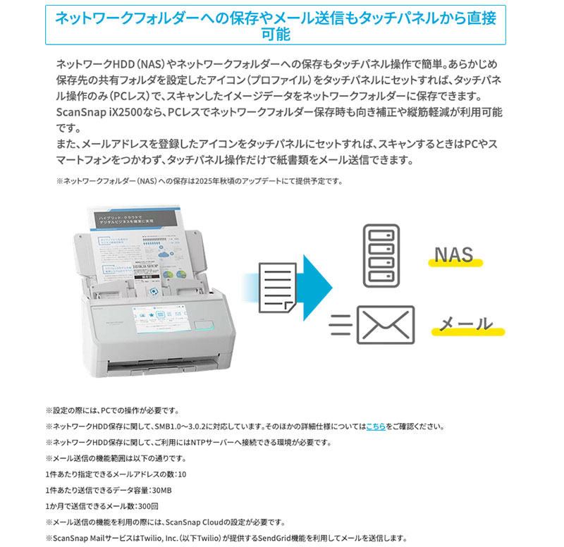 ■ PCレスでクラウド・ネットワークフォルダー・メール送信