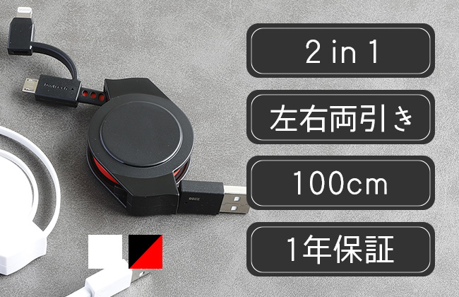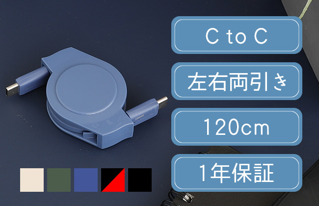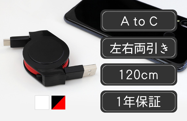 Type-C充電ケーブル 120cm リール式 断線に強い やわらか