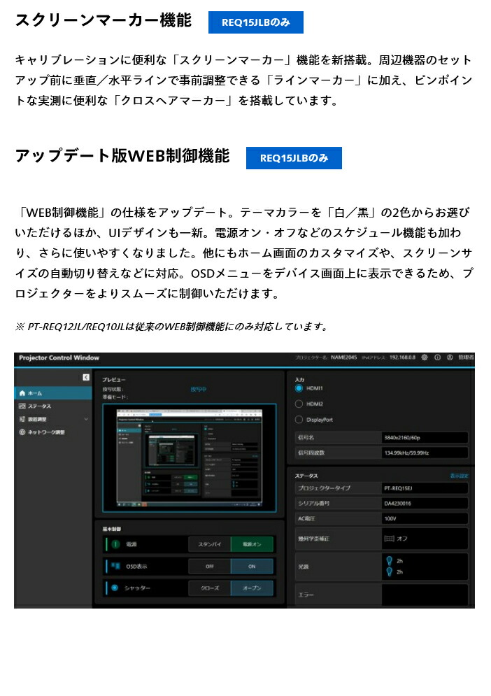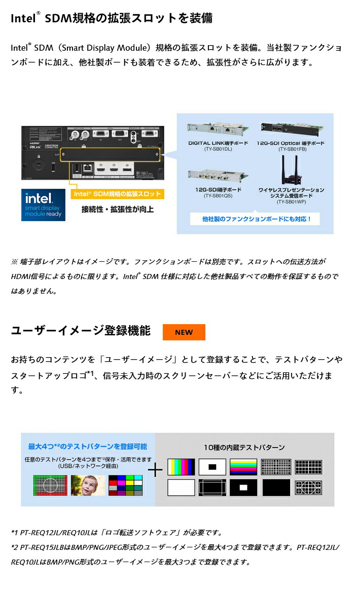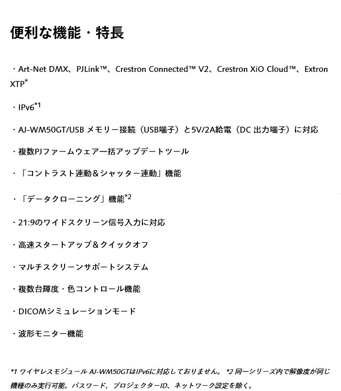 Art-Net、PJLinkTM(Class 2)、Crestron Connected V2、Crestron XiO Cloud、AMX DD