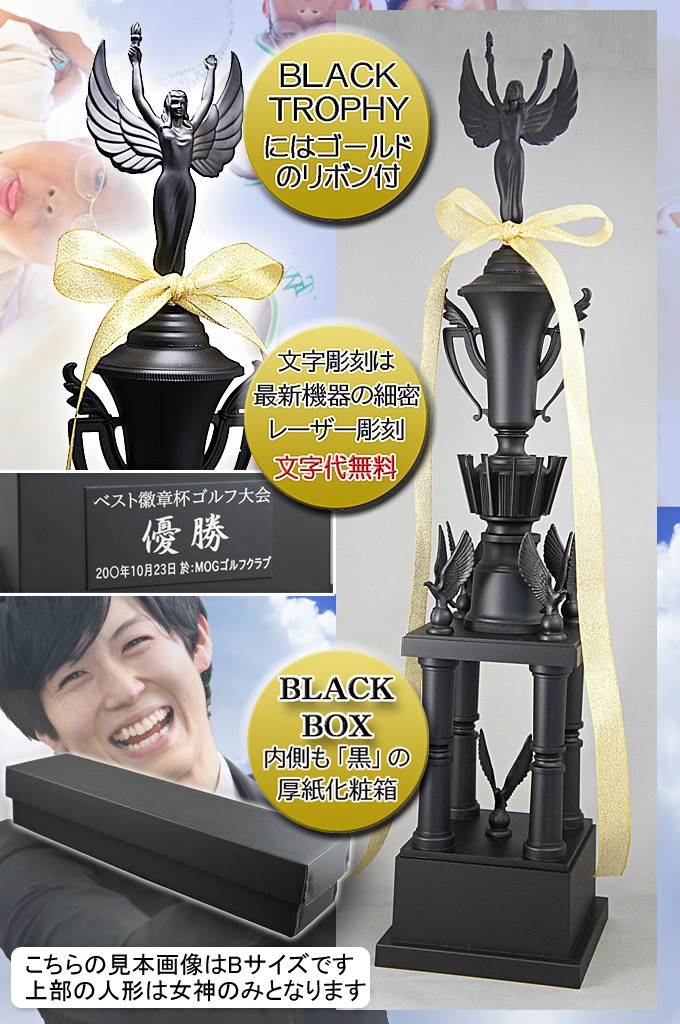 ブラックトロフィー【文字無料・送料無料】一本柱D 高さ340mm