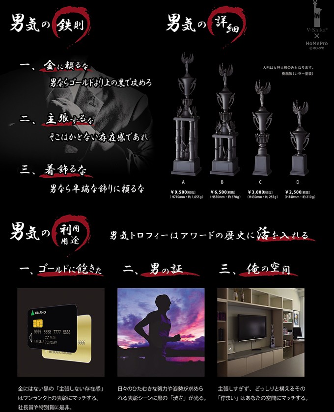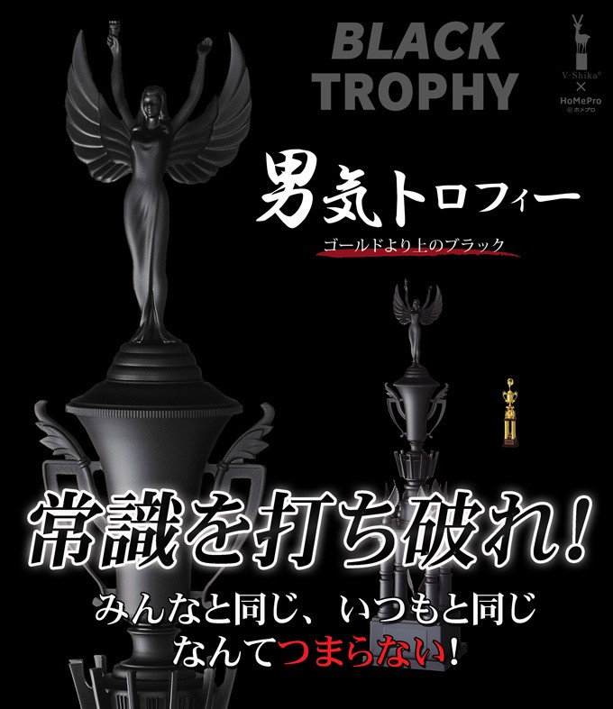ブラックトロフィー(黒)【文字無料】高さ340mm人気の男気トロフィー一本柱 M-HP1004Dサイズ